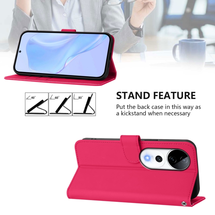 Funda de Cuero con Cordón para Teléfono con Diseño de Piel de Color Sólido y Tacto Agradable para El Tacto del Vivo S19 Pro (Rosa Rojo)