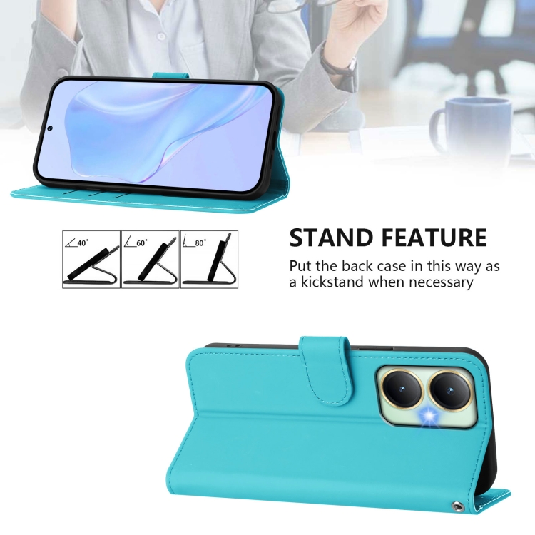 Funda de Cuero con Cordón para Teléfono con Diseño de Piel de Color Sólido y Tacto Global para Vivo Y27 4G 2023 (Azul Lago)