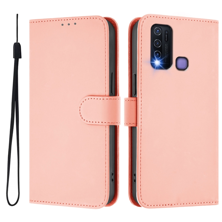 Funda de Cuero con Cordón para Teléfono con Diseño de Piel de Color Sólido y Tacto Global para Vivo Y30 4G (Rosa)