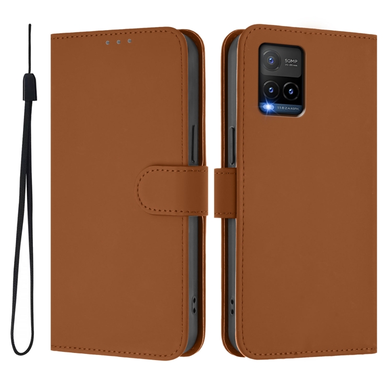 Funda de Cuero con Cordón para Teléfono con Diseño de Piel de Color Sólido y Tacto Suave para Vivo Y33S 4G Global / Y21 2021 (Marrón)