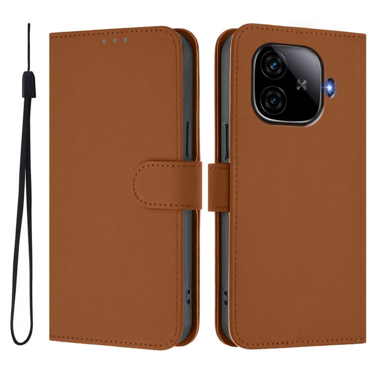 Funda de Cuero con Cordón para Teléfono con Diseño de Piel Sintética de Color Liso para Vivo Iqoo Z9 5G/Z9 Turbo 5G (Marrón)