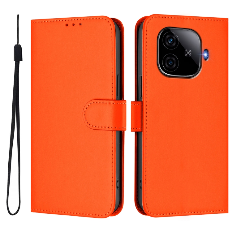 Funda de Cuero con Cordón para Teléfono con Diseño de Piel Sintética de Color Liso y Tacto Suave para Vivo Iqoo Z9 5G/Z9 Turbo 5G (Naranja)