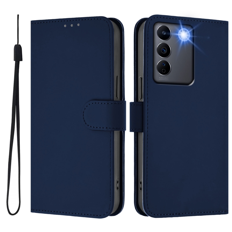 Funda de Cuero con Cordón para Teléfono con Diseño de Piel Sintética de Color Liso y Tacto Suave para Vivo V27E 4G Global/T2 4G Global (Azul Marino)