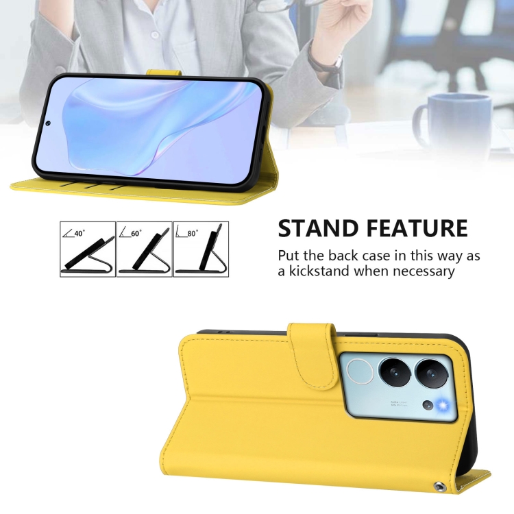Funda de Cuero con Cordón para Teléfono con Diseño de Piel Sintética de Color Liso y Tacto Suave para Vivo V29E 5G Global / Y200 5G Global (Amarillo Limón)