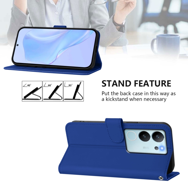 Funda de Cuero con Cordón para Teléfono con Diseño de Piel Sintética de Color Liso y Tacto Suave para Vivo V29E 5G Global / Y200 5G Global (Azul Oscuro)