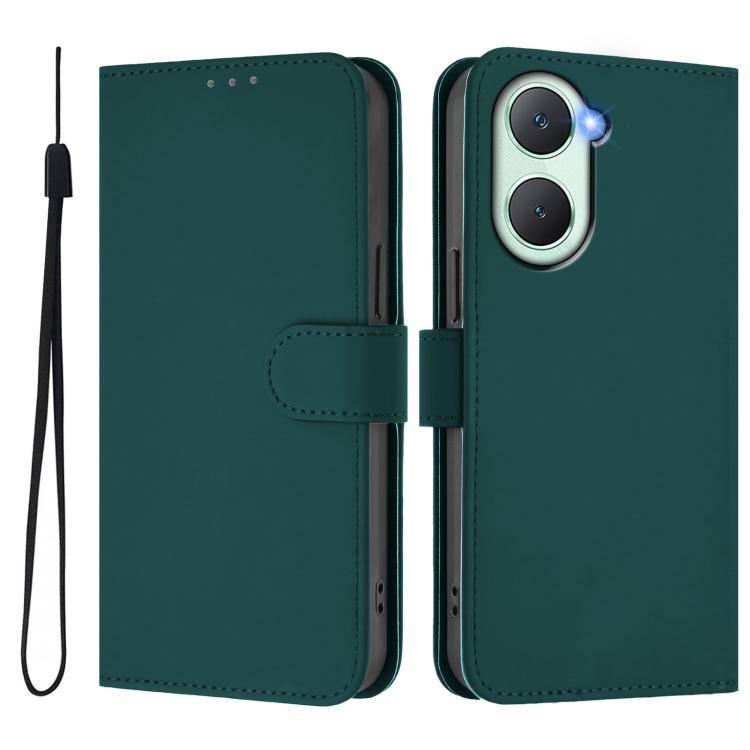 Funda de Cuero con Cordón para Teléfono con Diseño de Piel Sintética de Color Liso y Tacto Suave para Vivo Y03 4G Global / Y18 4G (Verde Oscuro)