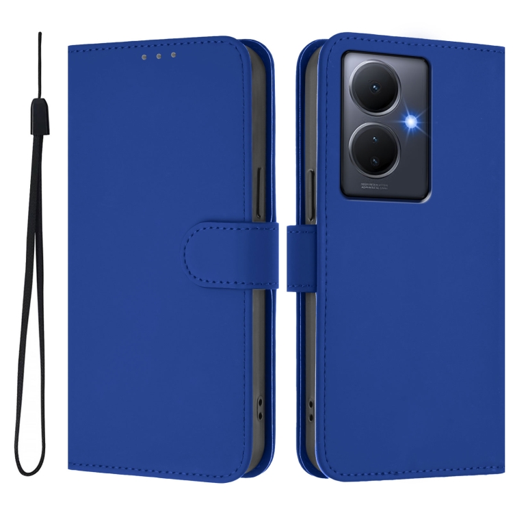 Funda de Cuero con Cordón para Teléfono con Diseño de Piel Sintética de Color Liso y Tacto Suave para Vivo Y78 5G Global/V29 Lite (Azul Oscuro)