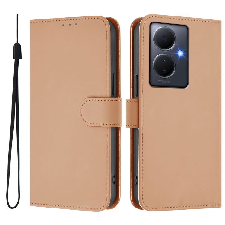 Funda de Cuero con Cordón para Teléfono con Diseño de Piel Sintética de Color Liso y Tacto Suave para Vivo Y78 5G Global/V29 Lite (Desnudo)