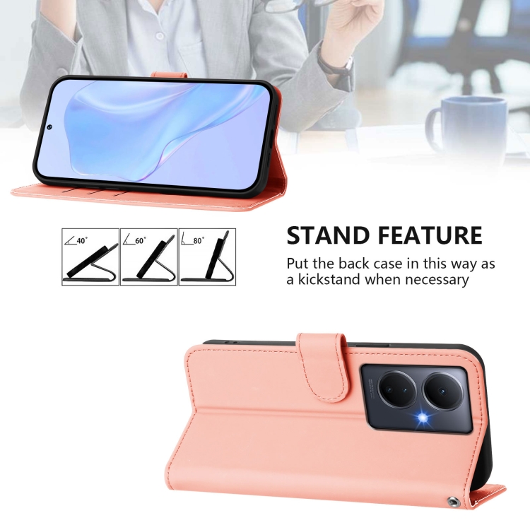 Funda de Cuero con Cordón para Teléfono con Diseño de Piel Sintética de Color Liso y Tacto Suave para Vivo Y78 5G Global/V29 Lite (Rosa)