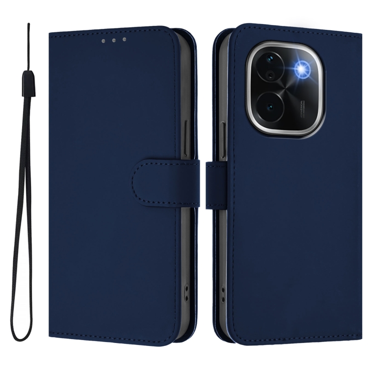Funda de Cuero con Cordón para Teléfono con Diseño de Piel Sintética de Color Sólido y Tacto Indio para Vivo Iqoo Z9S Pro 5G (Azul Marino)
