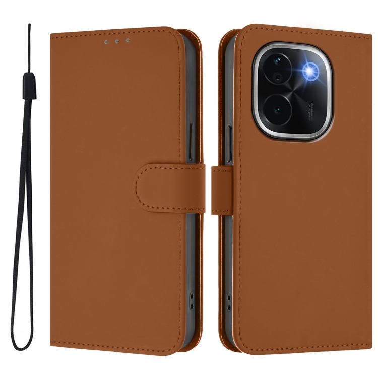 Funda de Cuero con Cordón para Teléfono con Diseño de Piel Sintética de Color Sólido y Tacto Indio para Vivo Iqoo Z9S Pro 5G (Marrón)