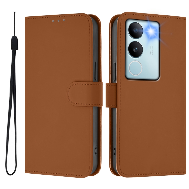 Funda de Cuero con Cordón para Teléfono con Diseño de Piel Sintética de Color Sólido y Tacto Suave para Vivo V29 5G Global/V29 Pro (Marrón)