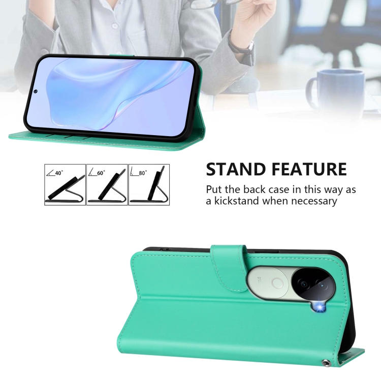 Funda de Cuero con Cordón para Teléfono con Diseño de Piel Sintética de Color Sólido y Tacto Suave para Vivo V40E 5G India/Iqoo Z9S 5G (Verde)