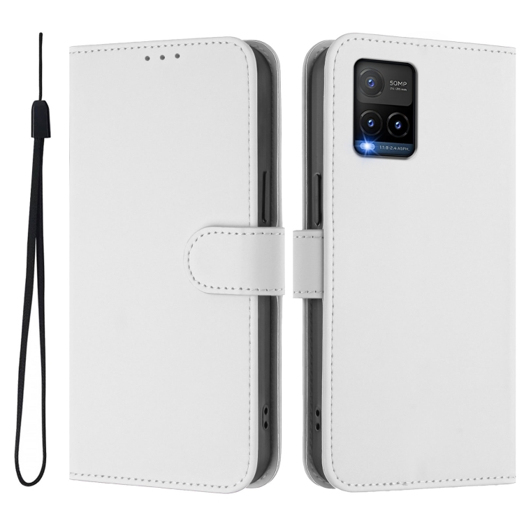 Funda de Cuero con Cordón para Teléfono con Diseño de Piel Sintética de Color Sólido y Tacto Suave para Vivo Y33S 4G Global / Y21 2021 (Blanco)