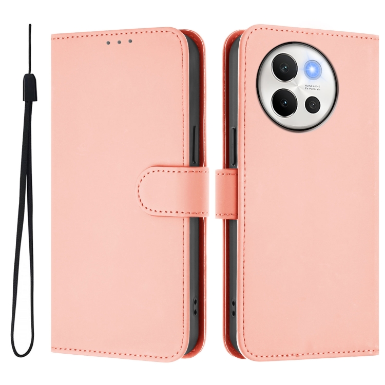 Funda de Cuero con Cordón para Teléfono con Diseño Global Skin Feel de Color Sólido para Vivo V40 Lite 5G/V30E 5G (Rosa)