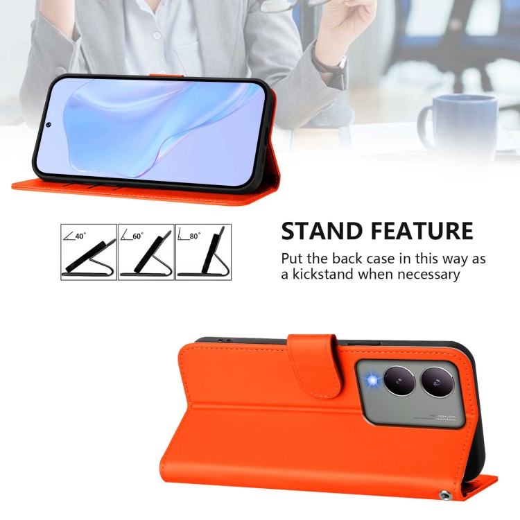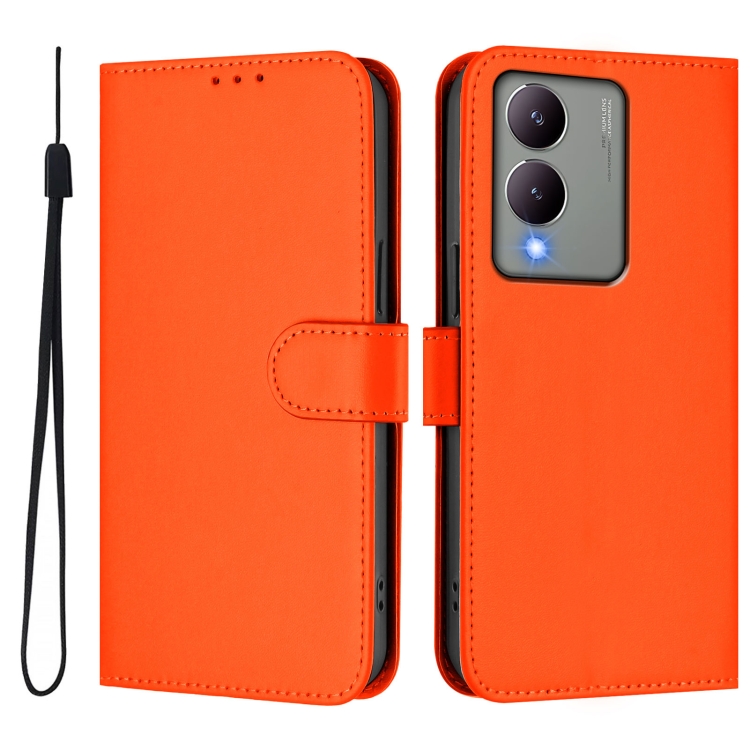 Funda de Cuero con Cordón para Teléfono con Diseño Global Skin Feel de Color Sólido para Vivo Y17S 4G (Naranja)