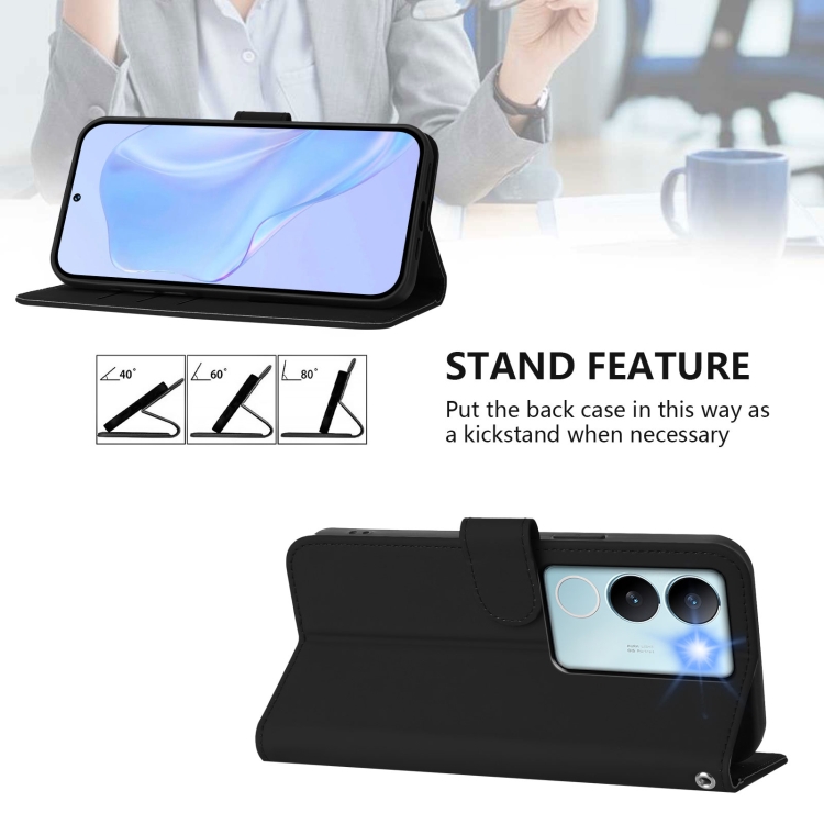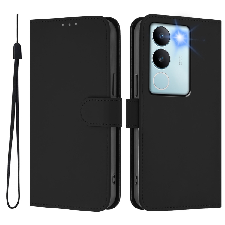Funda de Cuero con Cordón para Teléfono con Sensación de Piel de Color Sólido para Vivo V29 5G Global / V29 Pro (Negro)