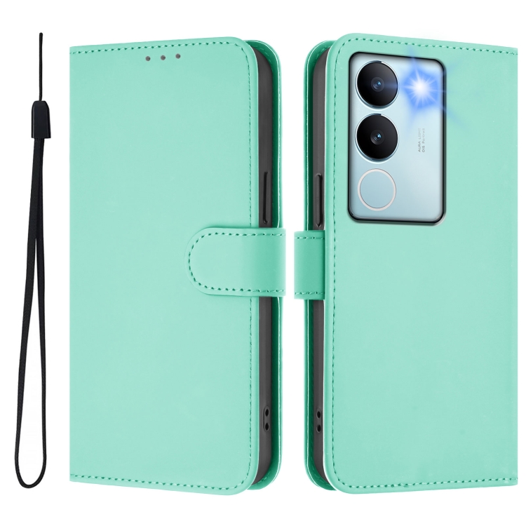 Funda de Cuero con Cordón para Teléfono con Sensación de Piel de Color Sólido para Vivo V29 5G Global / V29 Pro (Verde Menta)
