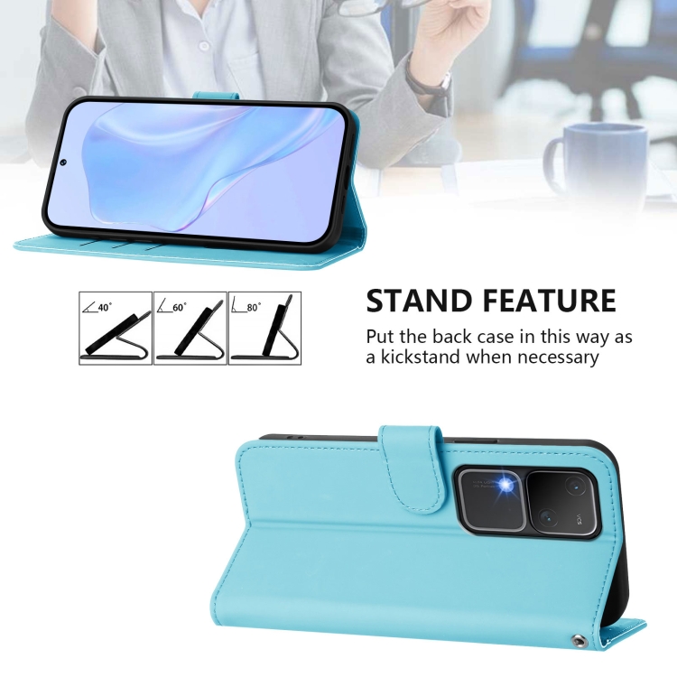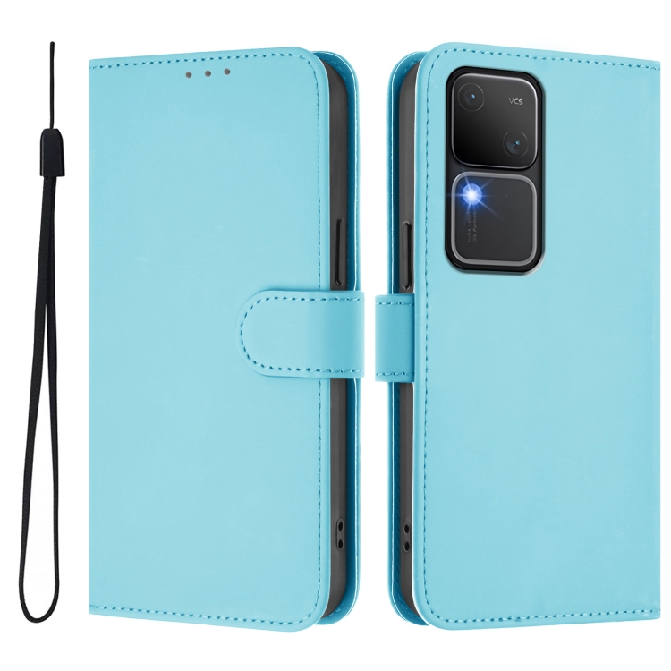 Funda de Cuero con Cordón para Teléfono con Sensación de Piel de Color Sólido para Vivo V30 5G Global / V30 Pro Global (Azul Cielo)