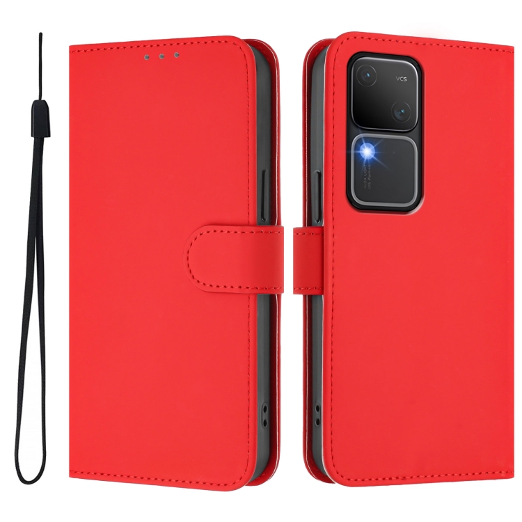 Funda de Cuero con Cordón para Teléfono con Sensación de Piel de Color Sólido para Vivo V30 5G Global / V30 Pro Global (Rojo)