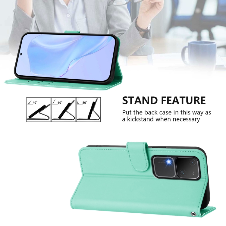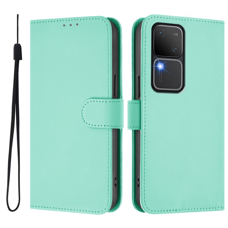 Funda de Cuero con Cordón para Teléfono con Sensación de Piel de Color Sólido para Vivo V30 5G Global / V30 Pro Global (Verde Menta)