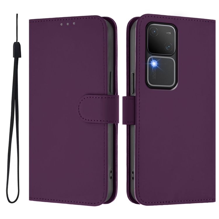 Funda de Cuero con Cordón para Teléfono con Sensación de Piel de Color Sólido para Vivo V30 5G Global / V30 Pro Global (Violeta)