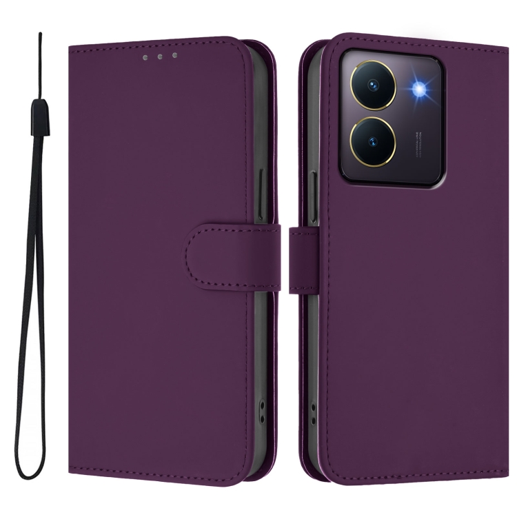 Funda de Cuero con Cordón para Teléfono con Sensación de Piel de Color Sólido para Vivo Y36 5G Global / Y36 4G Global (Violeta)