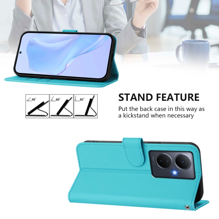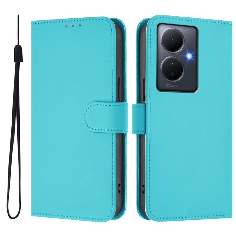 Funda de Cuero con Cordón para Teléfono con Sensación de Piel de Color Sólido para Vivo Y78 5G Global / V29 Lite (Azul Lago)