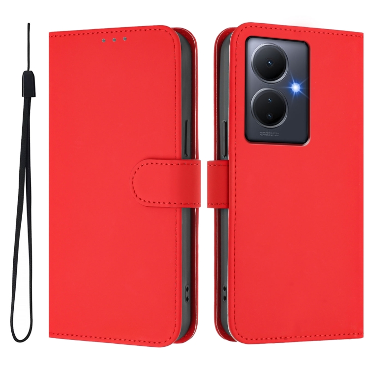 Funda de Cuero con Cordón para Teléfono con Sensación de Piel de Color Sólido para Vivo Y78 5G Global / V29 Lite (Rojo)