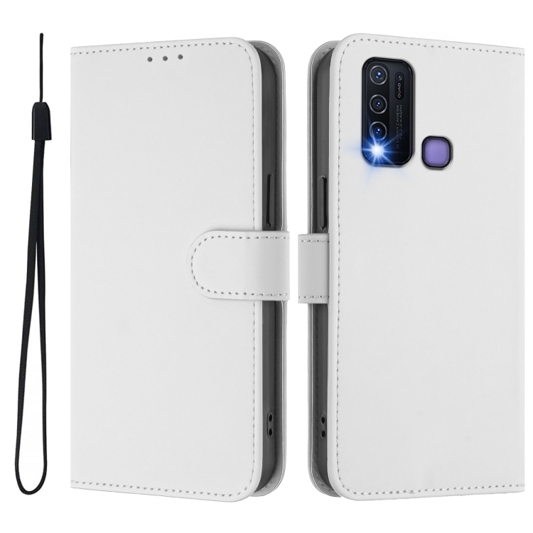 Funda de Cuero con Cordón para Teléfono con Sensación de Piel Global En Color Sólido para Vivo Y30 4G (Blanco)