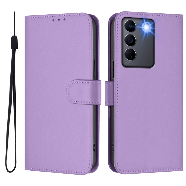 Funda de Cuero con Cordón para Teléfono con Sensación de Piel Global para Vivo V27 5G/V27 Pro 5G (Morado Lavanda)