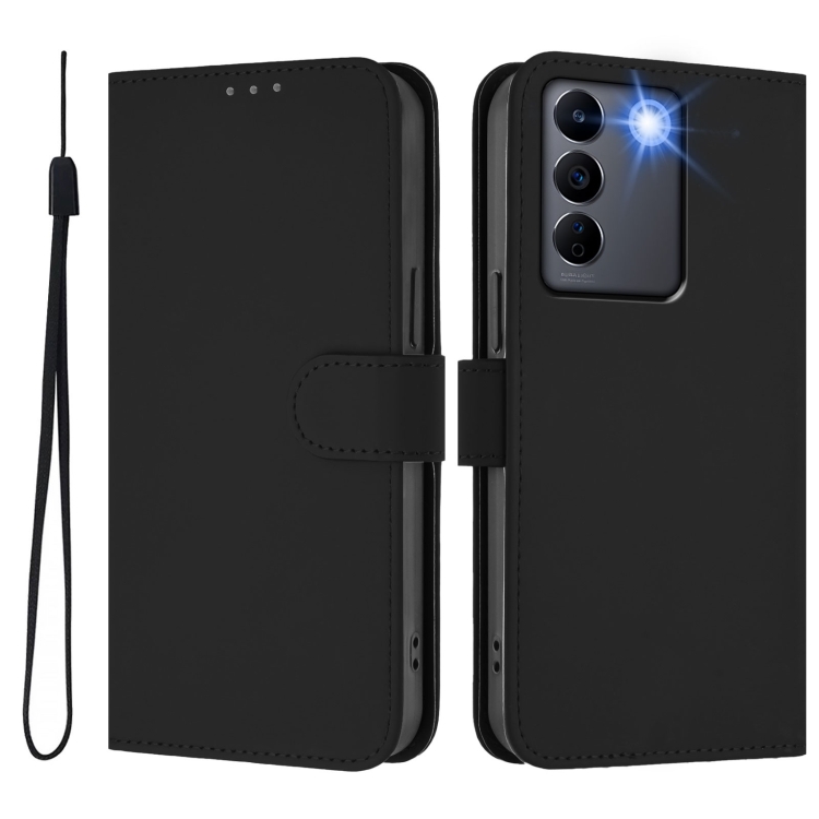 Funda de Cuero con Cordón para Teléfono con Sensación de Piel Global para Vivo V27 5G/V27 Pro 5G (Negro)