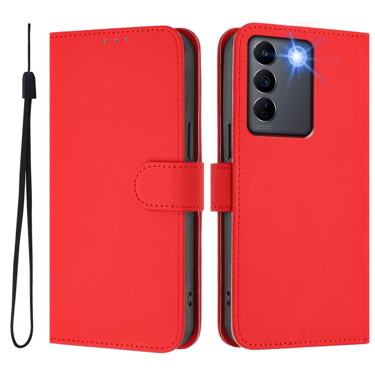 Funda de Cuero con Cordón para Teléfono con Sensación de Piel Global para Vivo V27 5G/V27 Pro 5G (Rojo)