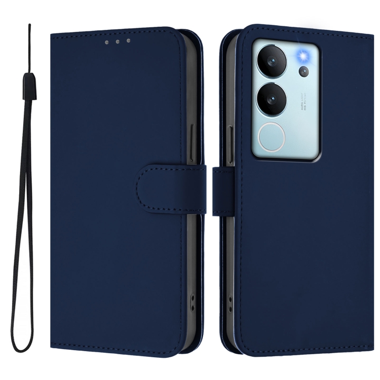 Funda de Cuero con Cordón para Teléfono con Sensación de Piel Global para Vivo V30 Lite 5G (Azul Marino)