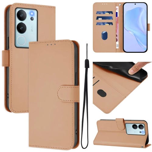 Funda de Cuero con Cordón para Teléfono con Sensación de Piel Global para Vivo V30 Lite 5G (Color Piel)