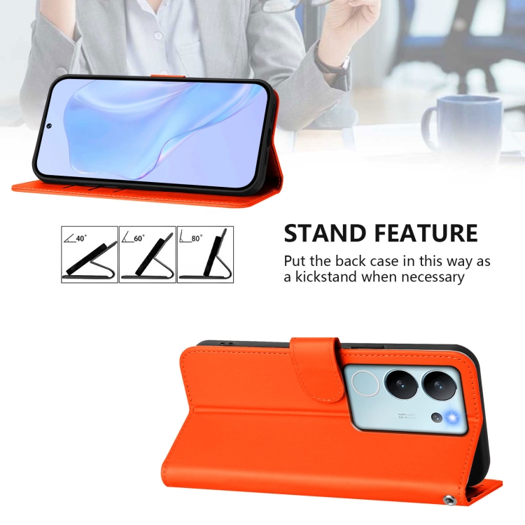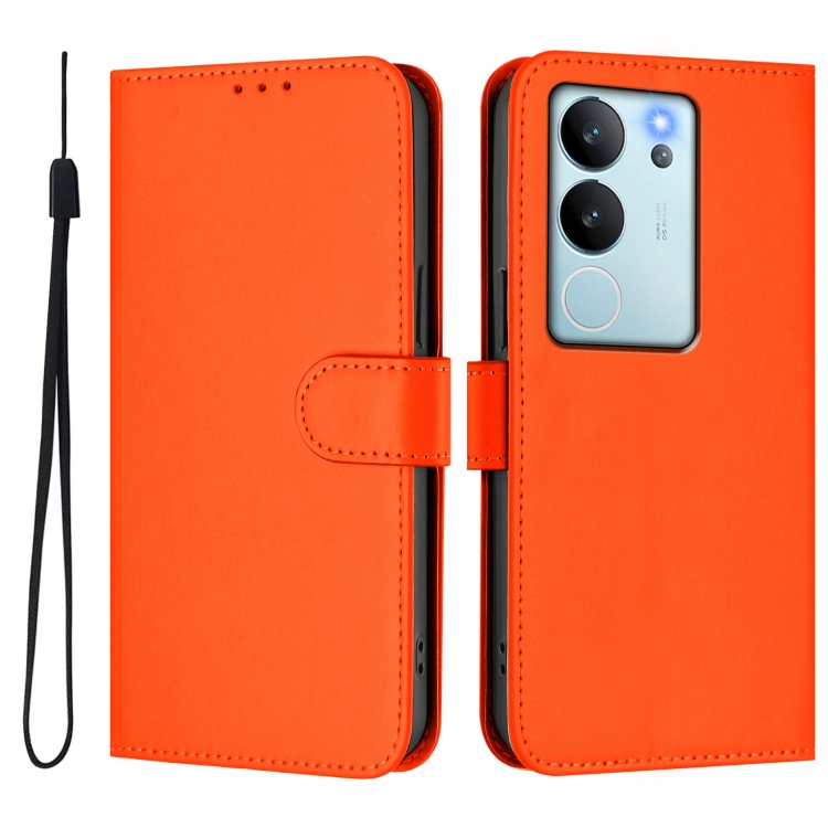 Funda de Cuero con Cordón para Teléfono con Sensación de Piel Global para Vivo V30 Lite 5G (Naranja)