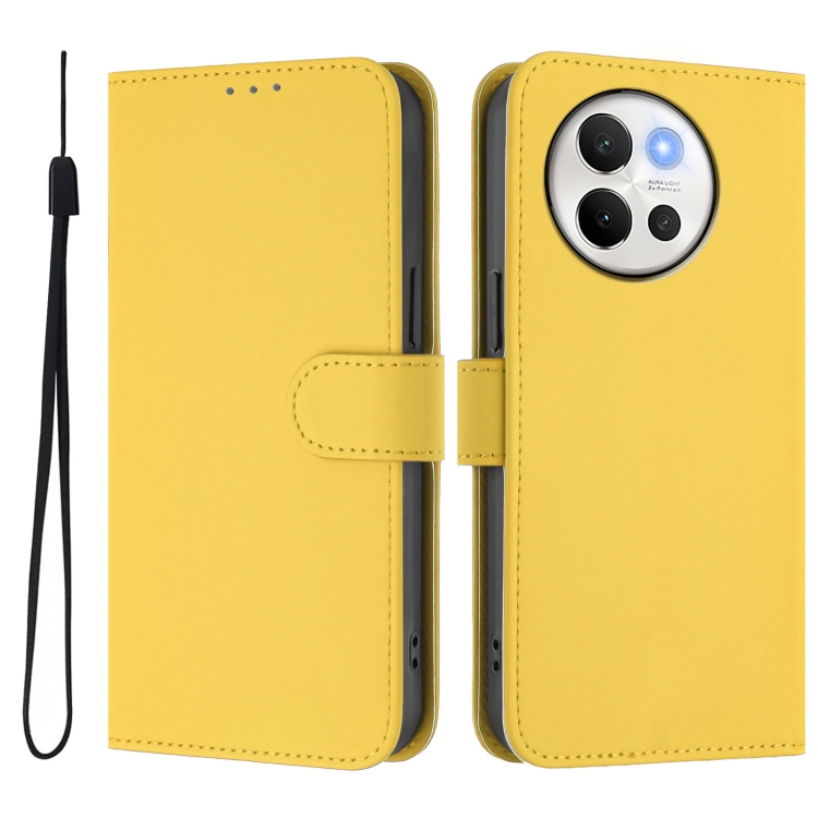 Funda de Cuero con Cordón para Teléfono con Sensación de Piel Global para Vivo V40 Lite 5G/V30E 5G (Amarillo Limón)