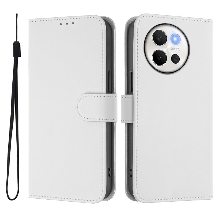 Funda de Cuero con Cordón para Teléfono con Sensación de Piel Global para Vivo V40 Lite 5G/V30E 5G (Blanco)