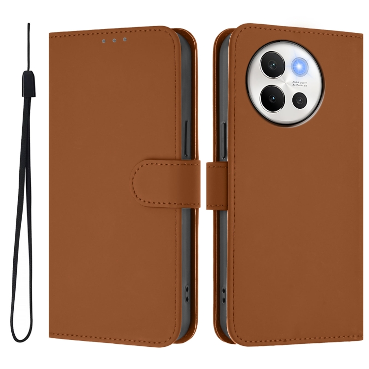 Funda de Cuero con Cordón para Teléfono con Sensación de Piel Global para Vivo V40 Lite 5G/V30E 5G (Marrón)