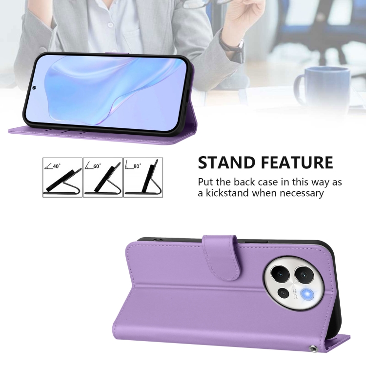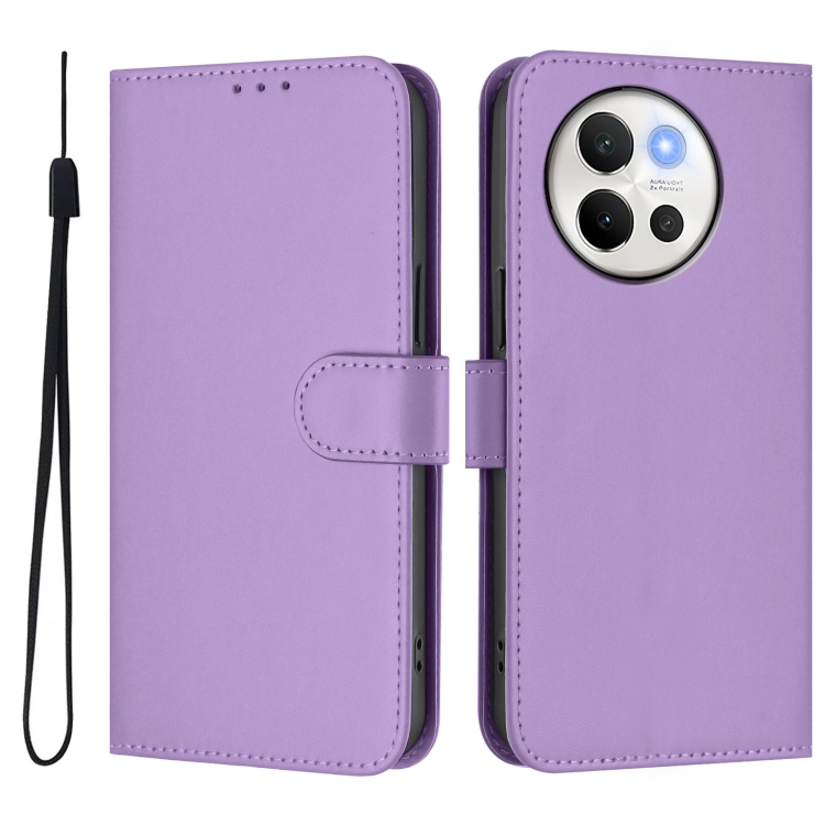 Funda de Cuero con Cordón para Teléfono con Sensación de Piel Global para Vivo V40 Lite 5G/V30E 5G (Morado Lavanda)
