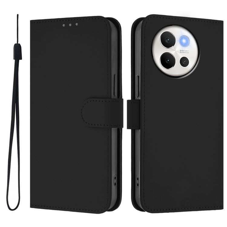Funda de Cuero con Cordón para Teléfono con Sensación de Piel Global para Vivo V40 Lite 5G/V30E 5G (Negro)