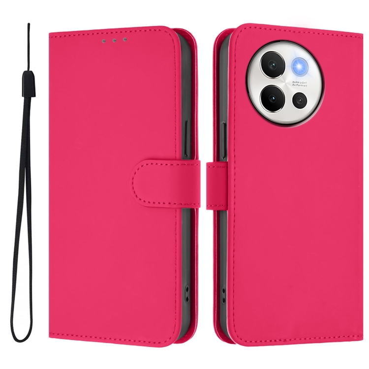 Funda de Cuero con Cordón para Teléfono con Sensación de Piel Global para Vivo V40 Lite 5G/V30E 5G (Rosa y Rojo)