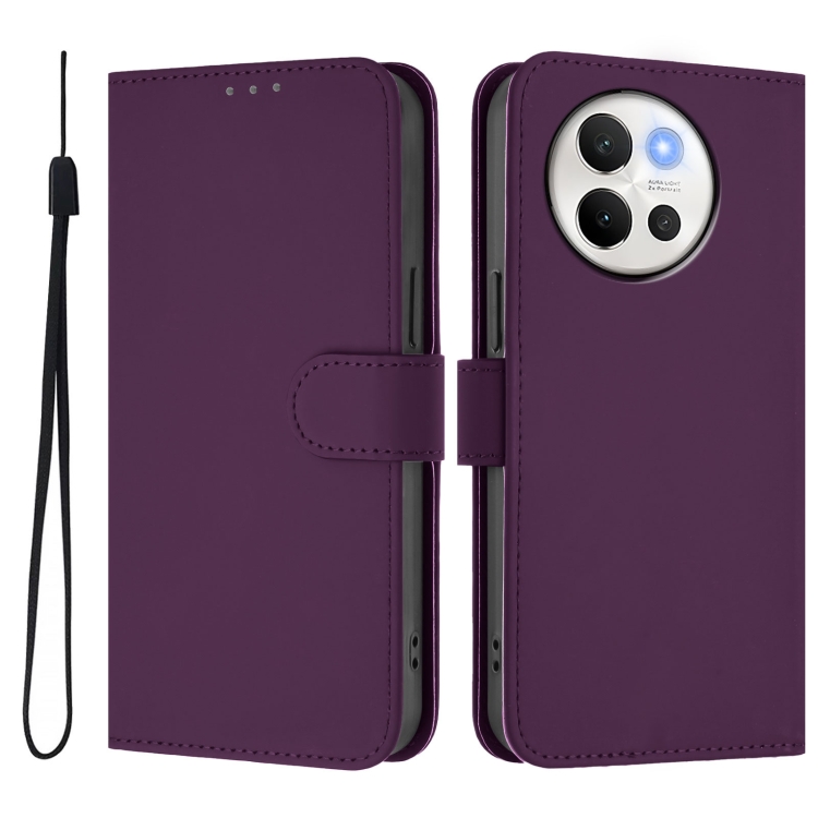 Funda de Cuero con Cordón para Teléfono con Sensación de Piel Global para Vivo V40 Lite 5G/V30E 5G (Violeta)