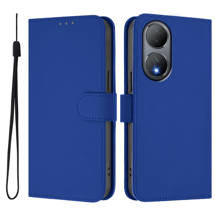Funda de Cuero con Cordón para Teléfono con Sensación de Piel Global para Vivo Y100 5G (Azul Oscuro)