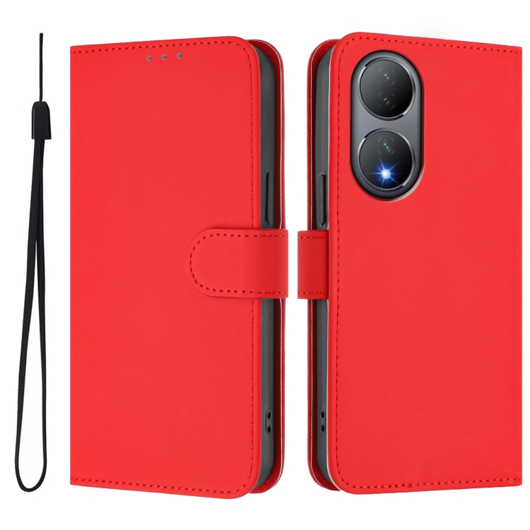 Funda de Cuero con Cordón para Teléfono con Sensación de Piel Global para Vivo Y100 5G (Rojo)