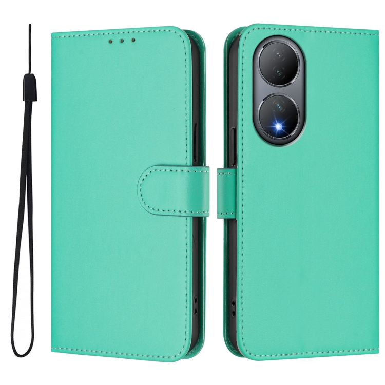 Funda de Cuero con Cordón para Teléfono con Sensación de Piel Global para Vivo Y100 5G (Verde)