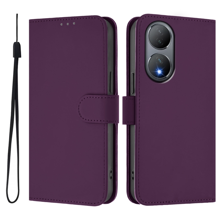Funda de Cuero con Cordón para Teléfono con Sensación de Piel Global para Vivo Y100 5G (Violeta)
