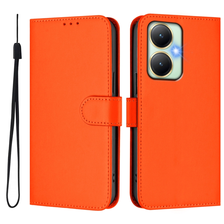 Funda de Cuero con Cordón para Teléfono con Sensación de Piel Global para Vivo Y27 4G 2023 (Naranja)
