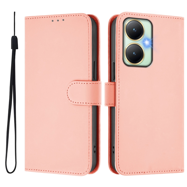 Funda de Cuero con Cordón para Teléfono con Sensación de Piel Global para Vivo Y27 4G 2023 (Rosa)