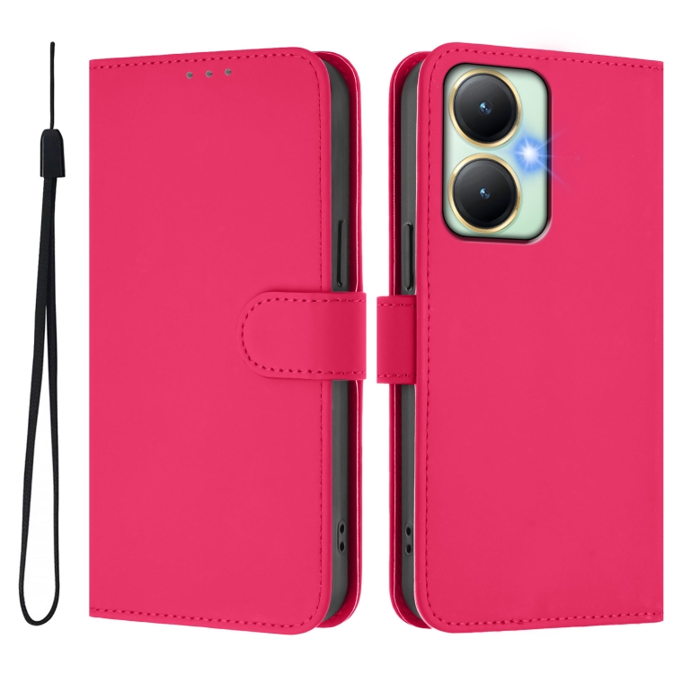 Funda de Cuero con Cordón para Teléfono con Sensación de Piel Global para Vivo Y27 4G 2023 (Rosa Rojo)